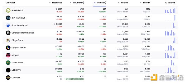 24小时NFT交易量、交易量前十项目 数据来源:Coinmarketcap