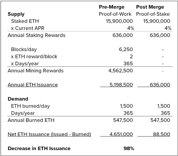 通过将以前的工作证明的发行量与权益证明的发行量进行比较,我们可以应用模型的假设,看到总发行量年化下降了98%以上。