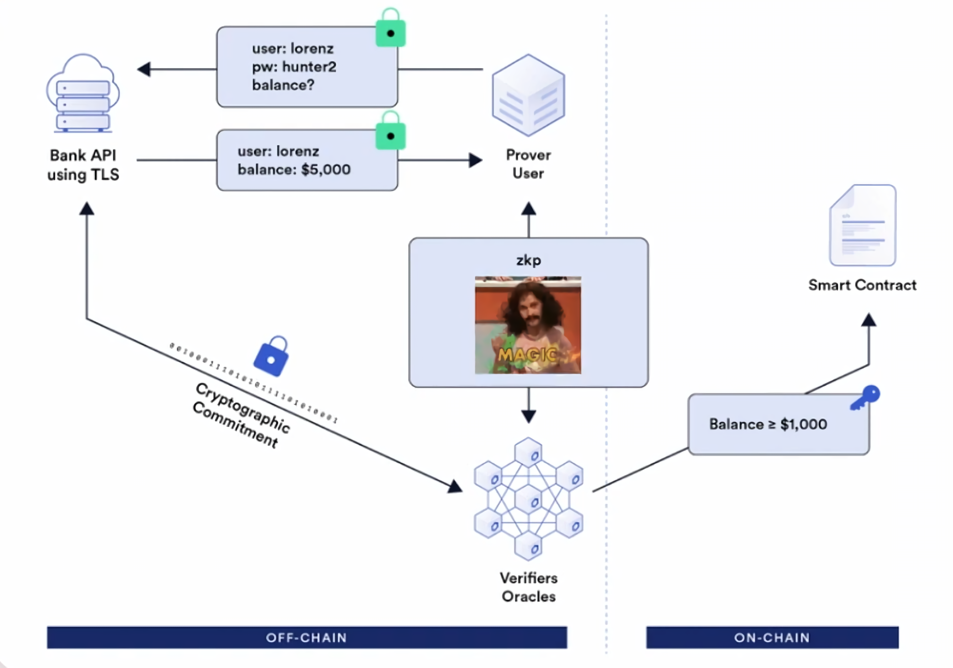 预言机需要去中心化(不依赖单点例如网站服务器)证明链下隐私数据的出处(Provenance),并在不泄露隐私的前提下供智能合约使用。零知识证明可以帮助实现这些功能。