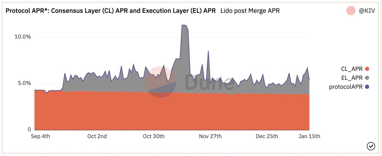 Lido 在以太坊上的年利率从 5.2% 上升到 5.6%(7 天移动平均值)。