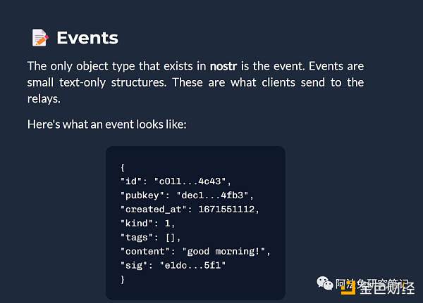 The event(事件种类)是nostr中最有趣的部分之一,这是一个字段,可以指定具体是哪种事件,为啥有趣,因为这样就说明,事件种类不受限制,我们可以设计任何我们想要的种类。