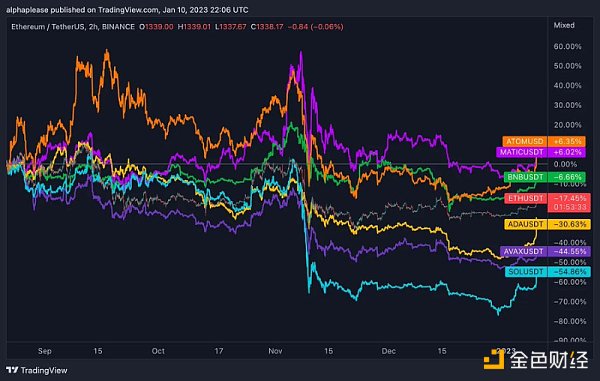 在过去六个月中,ATOM 也是表现最强的 L1 代币之一,这种情况应该在 23 年继续下去。