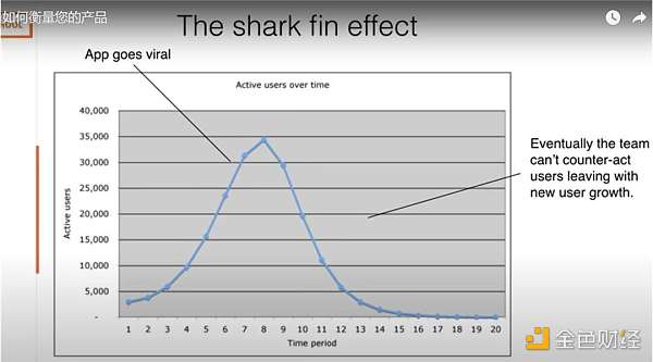 一是跟踪全新、刚注册的用户,在一周或 30 天后计算他们的回流率。此外,跟踪更长时间也很重要,因为一周后只能提供较为松散的数据。最关键的是要注意失去用户的速度,以便及时找到新的方法并加以改进。当你发现自己已拥有越来越多的用户时,你必须警惕是否出现了鱼翅效应。