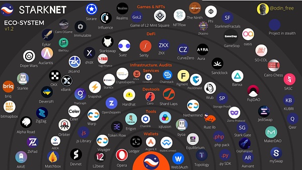 优势:StarkNet拥有自己独有的高级编程语言和框架 Cairo,是以太坊上第一个生产级完整的冯诺依曼图灵检查者(checker)。Cairo允许开发人员使用ZKSTARK的强大功能来创建完全可扩展的应用程序。自2022年年初以来,StarkNet生态系统已达到可用性门槛:可以构建完整且令人惊叹的dApp。