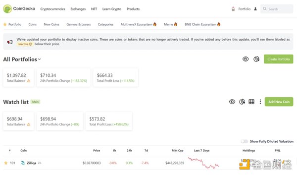 投资者可以使用像CoinGecko、Debank和Nansen这样的平台上的投资组合追踪功能,将他们投资的加密资产汇集到一个地方,方便跟进这些资产以及相关动态。投资组合追踪器也能通过推送通知或电子邮件通知投资者重大价格变动。