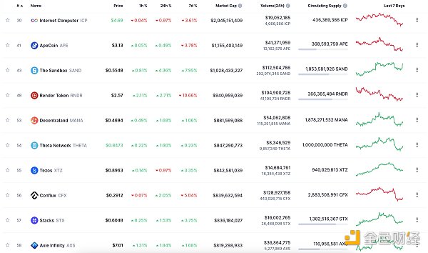 24小时NFT交易量、交易量前十项目 数据来源:Coinmarketcap