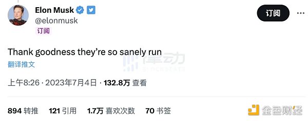 显然马斯克也注意到了这一揶揄,并做出了「谢天谢地,他们运行得如此理智」的嘲讽回击。