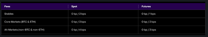 Vertex的交易费用属于较低的水平。无论现货还是合约,maker的费用目前均为0,taker的费用则为0.01%-0.04%。