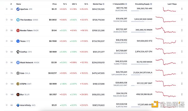 24小时NFT交易量、交易量前十项目 数据来源:Coinmarketcap