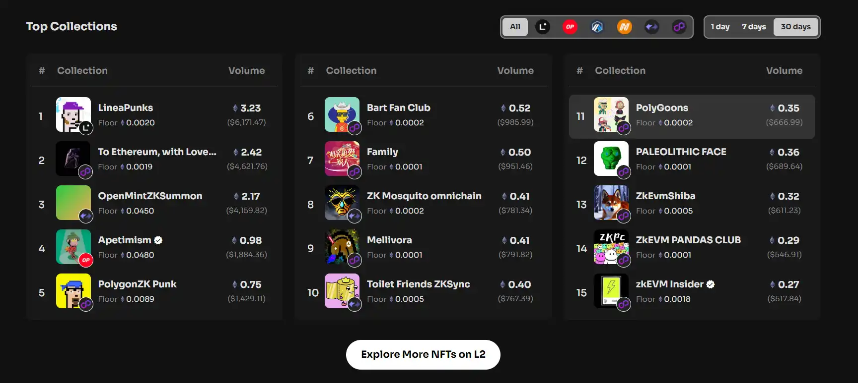 Zonic 是 Linea 上第一个官方支持的 NFT 市场。Zonic 是一个轻量级 NFT 市场,除了 Linea,Zonic 还支持 zkSync、Arbitrum (Nova)、Polygon 和 Optimism。在 Zonic 上出售 NFT 是完全免费的,平台在销售完成后会从销售价格中收取 2.5% 的费用。