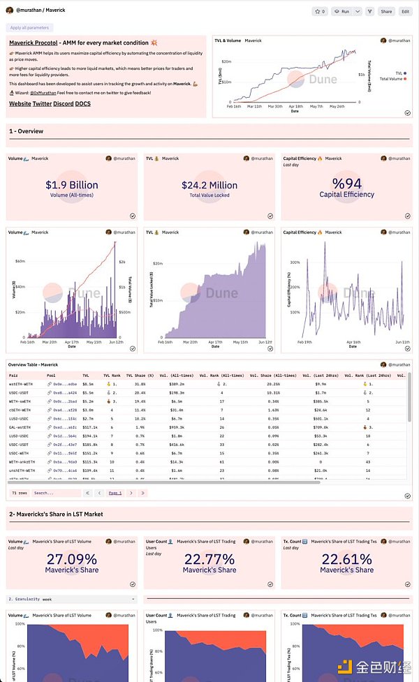 我来锦上添花,向大家公布监控Maverick Protocol的终极仪表盘:https://dune.com/murathan/maverick