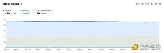 与此同时,持有人数量略微减少 1.97%,但市值却强劲的增长了 21.66%。 这种违反直觉的现象表明,虽然参与者池略有缩减,但剩余持有者增加了他们的持有份额,推高了Azuki市值。 这与我们观察到的“鲸鱼”数量增加了 2.86% 是一致的。
