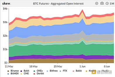衍生品方面,据Skew最新数据,比特币期货交易量较减半前有所下降。但未平仓合约量呈现出增长的趋势。