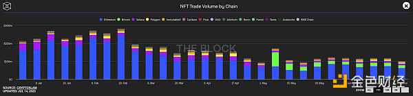 虽然 Solana 链上的 DeFi 生态还未恢复,但 2023 年初期 Solana NFT 的数据仅次于以太坊,近期受到 Bitcoin NFT 影响,下降至第二位。
