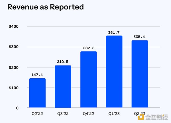 第二季度订阅和服务收入为 3.35 亿美元,环比下降 7%。从环比来看,订阅和服务收入的下降是由于 USDC 市值下降导致利息收入下降。