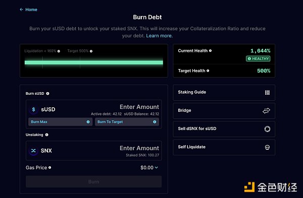 整个系统负债以sUSD为结算单位。Snx V2 版本只允许 Staker 质押人通过质押Snx来Mint 生成sUSD。本质就是抵押Snx借出了sUSD 。所以铸造出来的sUSD 为用户和整个系统的负债。