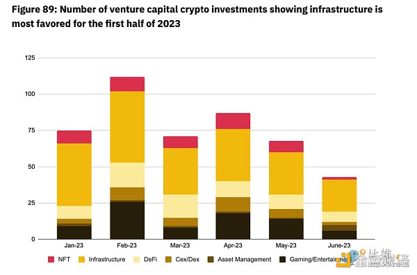 #VC 风险投资领域,基础设施 #infrastructure 领域吸引了最多的投资,其次是 #游戏、#娱乐 和 #DeFi(去中心化金融)领域。