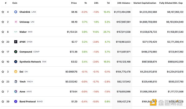 过去24小时去中心化交易所的交易量 数据来源:coingecko