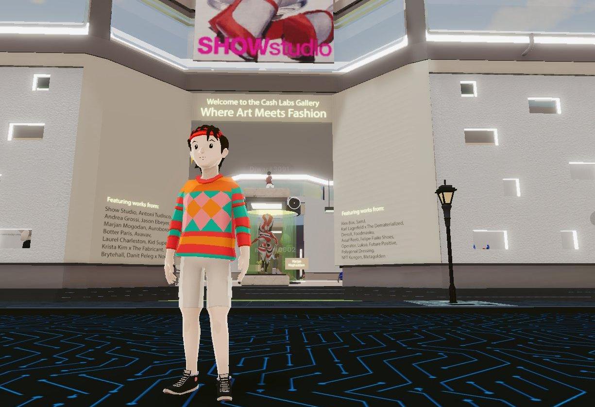 由策展人DavidCash创立的Web3机构CashLabs在MVFW期间打造了一个混合媒体艺术画廊。超过20位艺术家及品牌设计师在一个名为“在艺术和时尚的交汇点”的展览中亮相。画廊内的三层空间墙上随处挂满图像和视频作品,还有以雕塑形式表达的时尚作品。期间还举行了时尚电影节,每天于四楼屋顶处放映五部电影,这个为期四天的时尚电影盛宴带参观者通过电影探索时尚的历史和未来之旅。