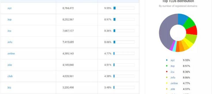 上述统计数据显示.xyz是近年来注册最多的gTLD域名。