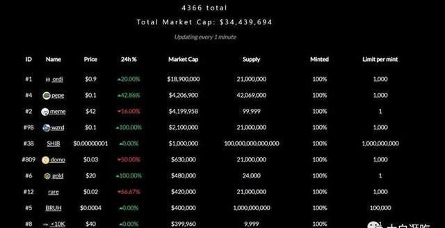 1.$ordi比特币第一个原生代币,总量21000枚,市值1890万(但场外远不止),作为第一个诞生的brc20具有象征性意义,犹如NFT中的punk,没有实用意义,大多靠信仰靠共识靠炒作,但不妨碍它起飞。