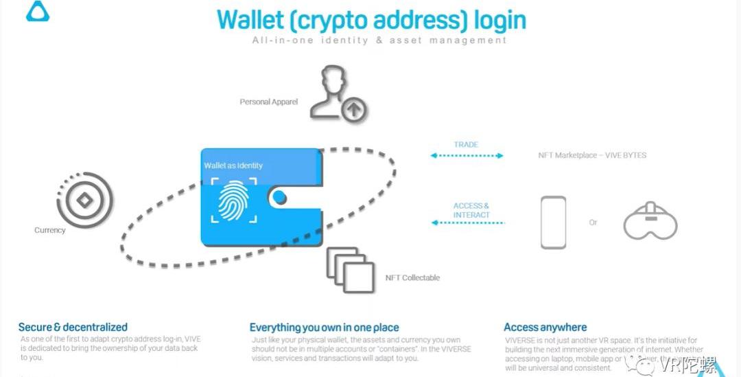 Viverse的思路是,创建一个钱包工具,它对于各种应用而言是独立的,它的归属权属于用户。你可以利用这个钱包保管各个平台上的重要资产。