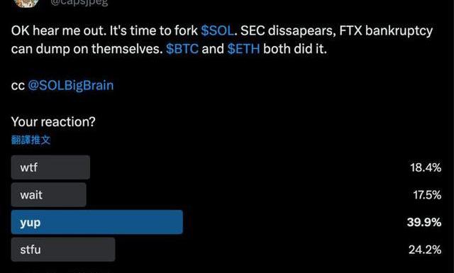 然而,社群对于此事件也有自己的看法。NFT项目DegenPicks共同创办人capsjpeg近日就在推特发起关于「是否同意分叉Solana,以摆脱SEC将其列入证券等问题」的投票,总计共有2,050人参与投票,其中39.9%支持分叉。
