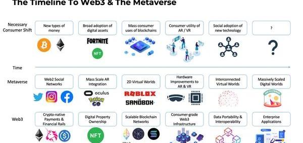 在元宇宙和Web3实现之前,还有很大的改进空间。在技??术方面,区块链网络仍然需要更大规模的大众消费应用程序,而虚拟世界缺少对AR和VR硬件的关键改进,以使这些虚拟世界更加方便和愉快。