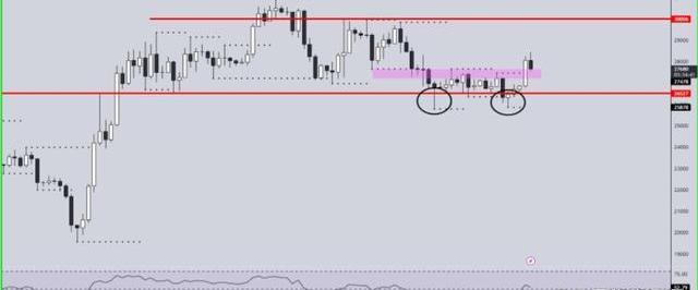 BTC的技术面还显示,在多次未能跌破26.5k的局部支撑位之后,价格最终通过突破关键阻力位27.5k表明了意图,尽管它已在隔夜回落至下方。