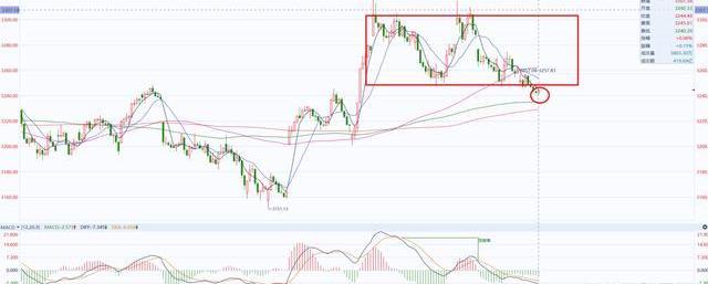 昨天分析到:上证指数行情大概率会是反弹为主,但事与愿违,今早开盘直接低开低走,行情走势瞬间从一个震荡行情走弱,虽然现在还没有完全脱离中枢,但也是有损投资者的信心。从30min的走势图不难发现,现在在试探144均线,至于会不会回抽反弹,大致明天会给个最起码5min的反弹,如果连找个小反弹都不给的话,那几乎可以断定这波上涨高点就是在3322点。