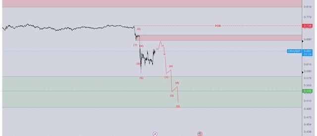 使用艾略特波浪理论进行预测,CRV可能会从目前交易的0.55美元区域下跌17%至0.49美元。