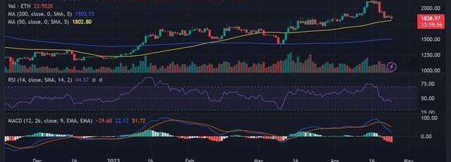 在价格上涨至2,000美元上方之后,ETH的价值在最近几天经历了下跌。在撰写本文时,它的交易价格约为1,839美元,跌幅超过1%。