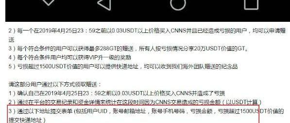 对于这种高位套现,暴力收割的无良行径,用户自然不会自认倒霉。很快,就有大量参与者自发组成了维权群,甚至还有损失惨重的用户开始自暴自弃,发表了一篇名为“致CNNS的感谢信”,准备对币世界进行伤敌一千,自损一千二的报复。面对着甚嚣尘上的负面言论,比特儿和币世界不得不吐出吃进口中的肉,承诺给遭受损失的用户一些象征性的补偿。