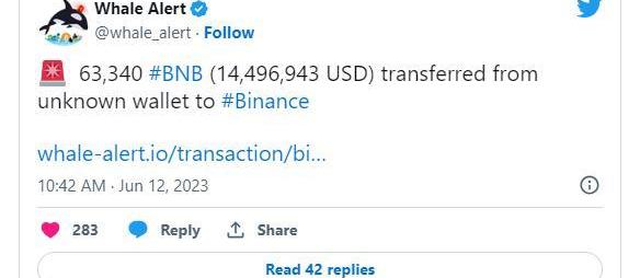 据whale_alert报道,6月12日,超过63,000个BNB被转回币安交易所。尽管存在顾虑,BNBChain和VenusProtocol团队已经制定了应对这种情况的计划。