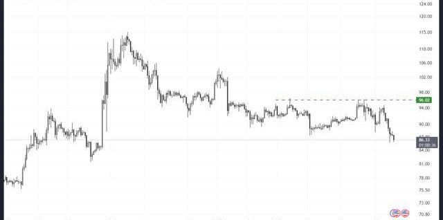 目前交易价格在86美元左右的山寨币,如果不超过96美元的阻力位,可能会继续下跌。在日线可能的支撑位中,83美元的中间水平值得关注。