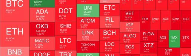 随着其他风险资产的价格下跌,比特币跌破22,000美元,此前杰罗姆鲍威尔在他的证词中发表声明称通货膨胀率仍然出乎意料地高。