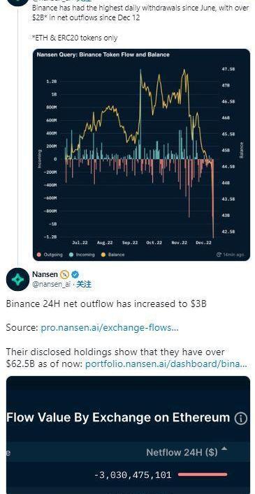在几条负面消息从加密货币交易所Binance流出超过30亿美元之后。