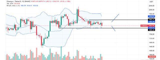目前,从日线图的烛台排列来看,ETH价格徘徊在1,800美元区间附近,摇摇欲坠,可能会下跌。尽管过去两个月以太坊一直看涨,但多头已被驯服,跌破1800美元水平可能预示着中期从看涨转向看跌。