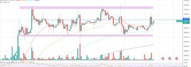 截至发稿,BTC价格为30,626美元,维持在过去两周的交易区间内。