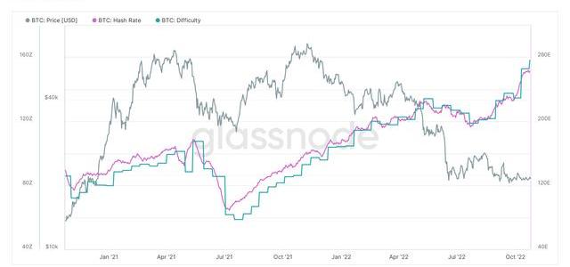 原因之一可能是9月底发生的以太坊(ETH)合并。通过合并,以太坊网络将其工作证明系统转换为权益证明系统,这使得以太坊矿工无法工作。大多数以太坊矿工可能会转向比特币挖矿,这可能会导致比特币矿工数量显着增加。