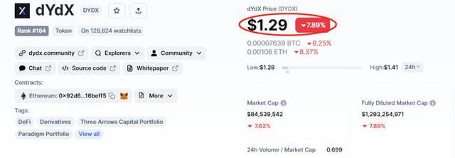Lookonchain发推表示:在DYDX关闭安全质押模块后,过去24小时内从安全模块质押池中提取了19,765,085枚DYDX(价值2600万美元)。提取的DYDX金额占流通量的30%。DYDX的巨大卖压即将到来!SmartMoney是DYDX提款第二多的地址,提取了3,132,004枚DYDX并转移到币安。这是一个聪明的卖家,每次他把DYDX转入交易所后,DYDX的价格就会下跌。