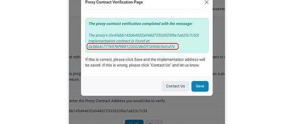 如果“Read/WriteasProxy”选项卡不可用,你可以导航至下方按钮,在ProxyContractVerification页面点击“Verify”,复制找到的实现地址: