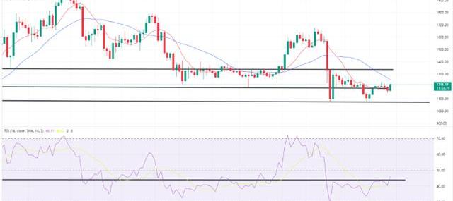 ETH/USD周二重回1,200美元上方,在今天早些时候触及1,216.52美元的高位。