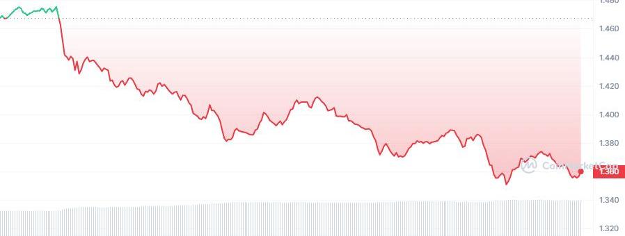 Polygon价格在过去24小时内大幅下跌7.37%,每个MATIC代币的交易价格为1.36美元。该加密货币的市值目前为118.7亿美元。成交量较上一交易日上涨37.96%。Polygon是一个以太坊第2层可扩展性平台,在过去的一个月里一直与以太坊一起上涨,但今天却出现了大幅下跌。