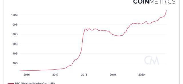 实现资本化是市场资本化的另一种选择,旨在考虑到比特币交易的实际情况。它不是根据最后的市场价格来定价每一个比特币的单位,而是根据它们最后在链上移动的时间为每一个比特币定价。这是可以确定的,因为比特币的账目是透明的,我们可以对每一枚比特币进行核算。