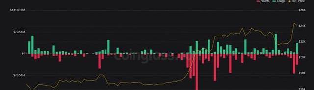 根据coinglass.com的数据,周四清算了价值约3500万美元的多头头寸,而周三仅清算了约500万美元的多头头寸。在最近的反弹之后获利了结,以及那些过于积极追涨的人的止损可能会使比特币回到24,000美元以下。