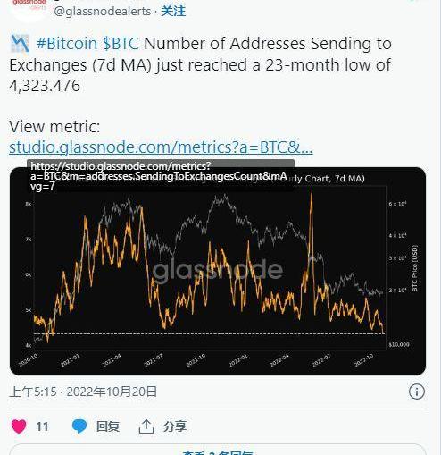 尽管交易量增加,但交易所交易平台上的硬币越来越少。Glassnode指出,上周四向交易所发送BTC的地址数量达到了两年来的最低值,这再次证明了该资产正在经历一个强劲的增持阶段。