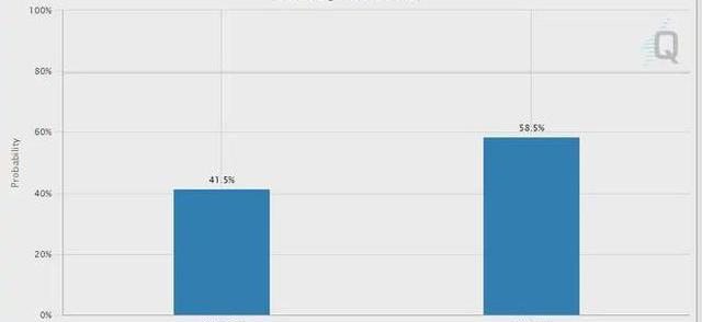 截至发稿,市场对于11月加息50个基点的预测为41.5%,加息75个基点的预测为58.5%。