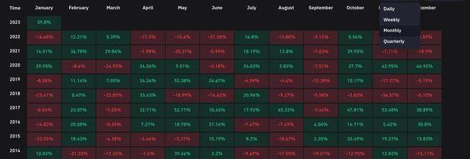 由于图表中没有FTX崩盘的影响,在撰写本文时,1月份的涨幅为39.8%,这是比特币自2013年以来最赚钱的1月份。