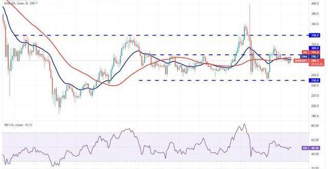 币安(BNB)在285月7日收于20美元支撑位下方,但空头无法利用这个机会。多头逢低买入并将价格推高至291日均线。